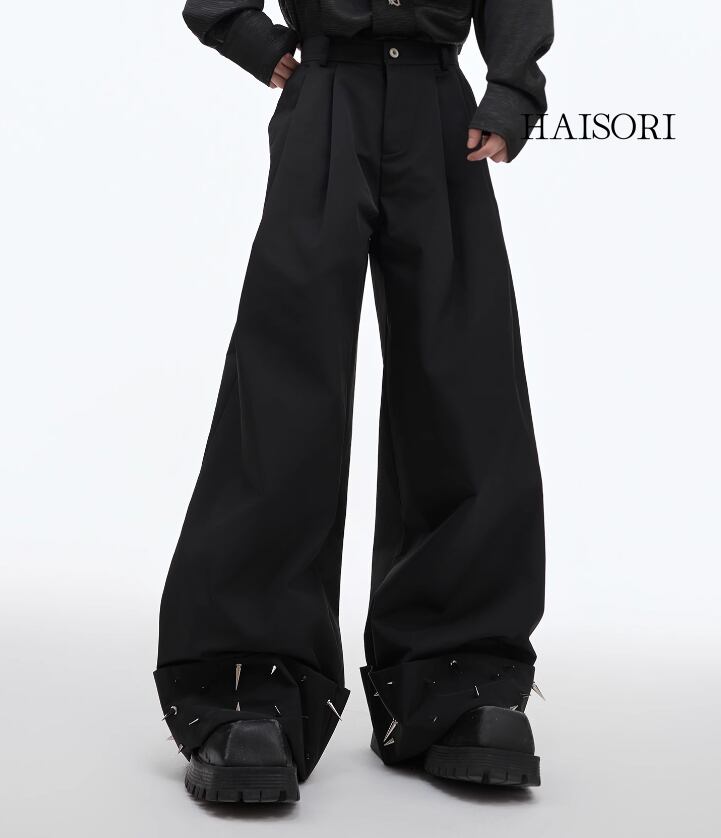 ★【 ルーズシルエットのゆったりめの形状のデザイン、裾のメタル製のスパイクがアクセントになったボトムス 】
