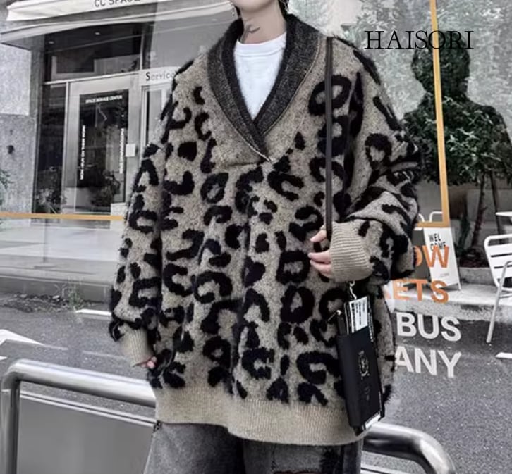 ★【 ヒョウ柄デザインのワイルドなデザイン、厚手生地を使用した暖かなトップス 】