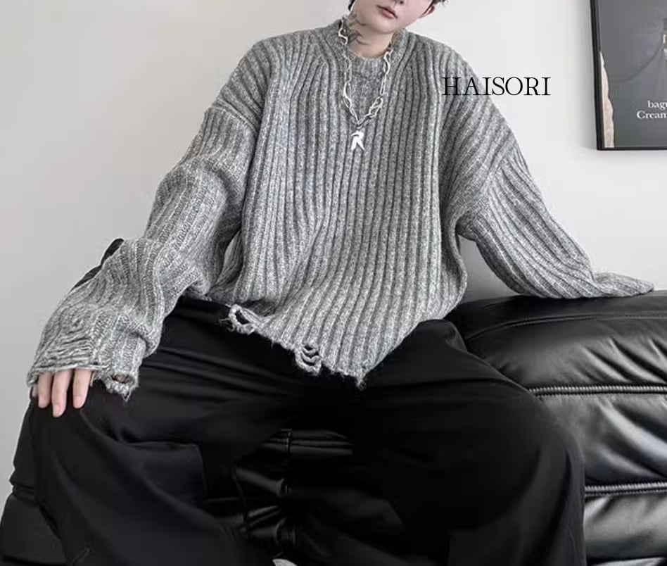 ★【 ほつれ加工がアクセントになったデザイン、ゆったりサイズのカジュアルトップス 】