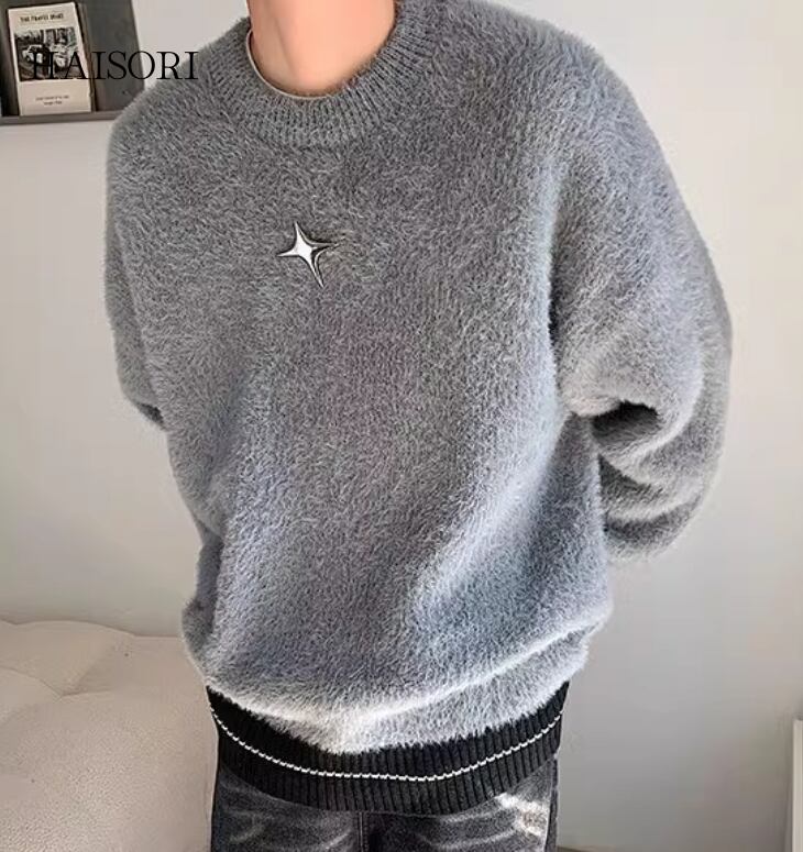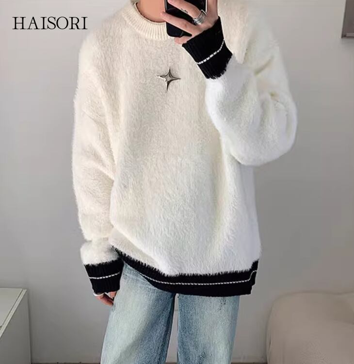★【 起毛感のある生地で寒い季節でも温かく感じるデザイン、星型のメタルパーツがアクセントになったトップス 】
