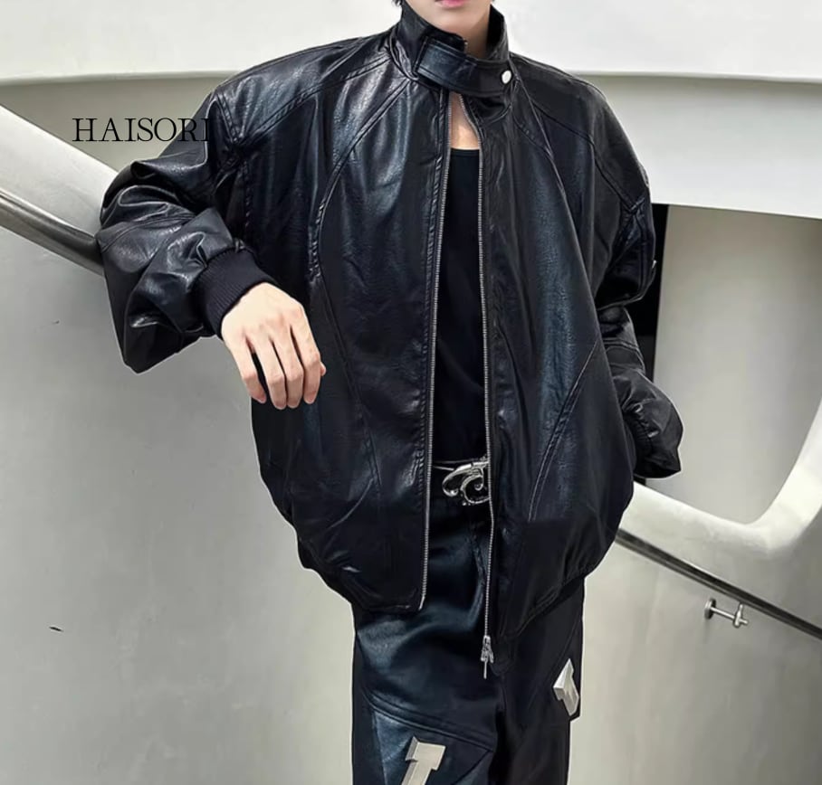The wild design using PU leather gives the jacket a fashionable look, and the belt at the collar accentuates the look.