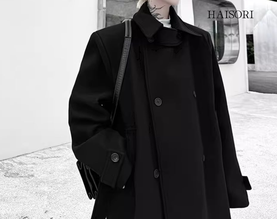 ★【 ウール生地を使用したシックな風合いのデザイン、様々なファッションに合わせやすいロング丈のコート 】
