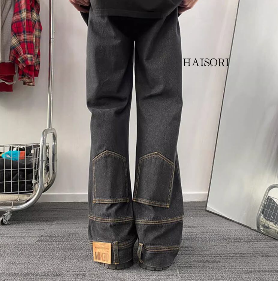 ★【 デニムを上下逆さまにしたような個性的なデザインが目を引く、ウォッシュ加工を施したデニム 】