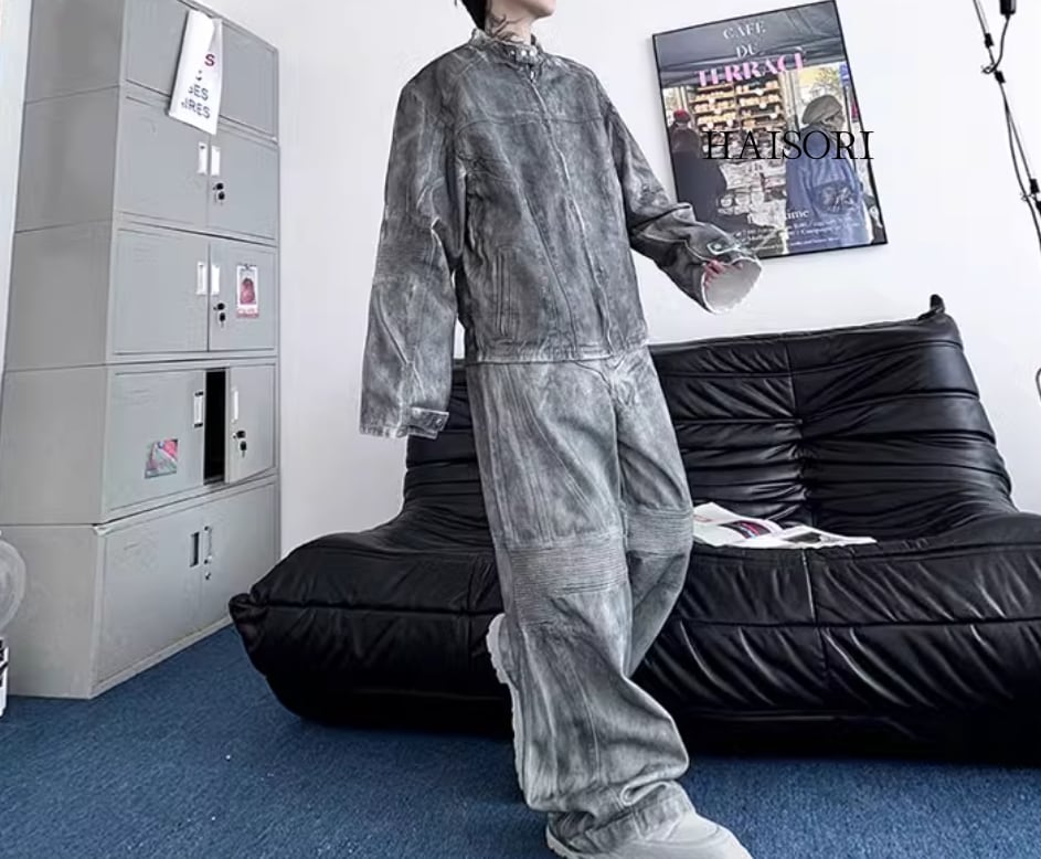 ★【 まだら模様の生地を使用したシックなデザイン、ルーズシルエットのクールなセットアップ 】