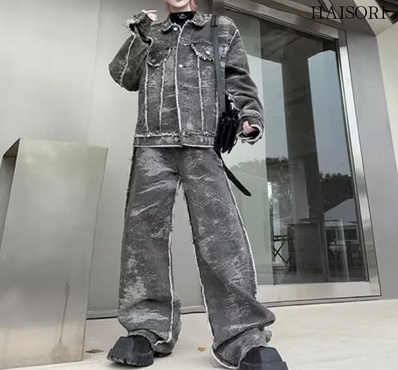 ★【 ダメージ加工のデニムを使用したワイルドな見た目、ルーズシルエットのセットアップ 】