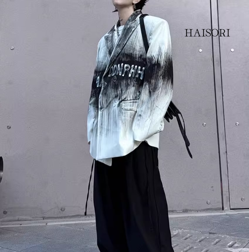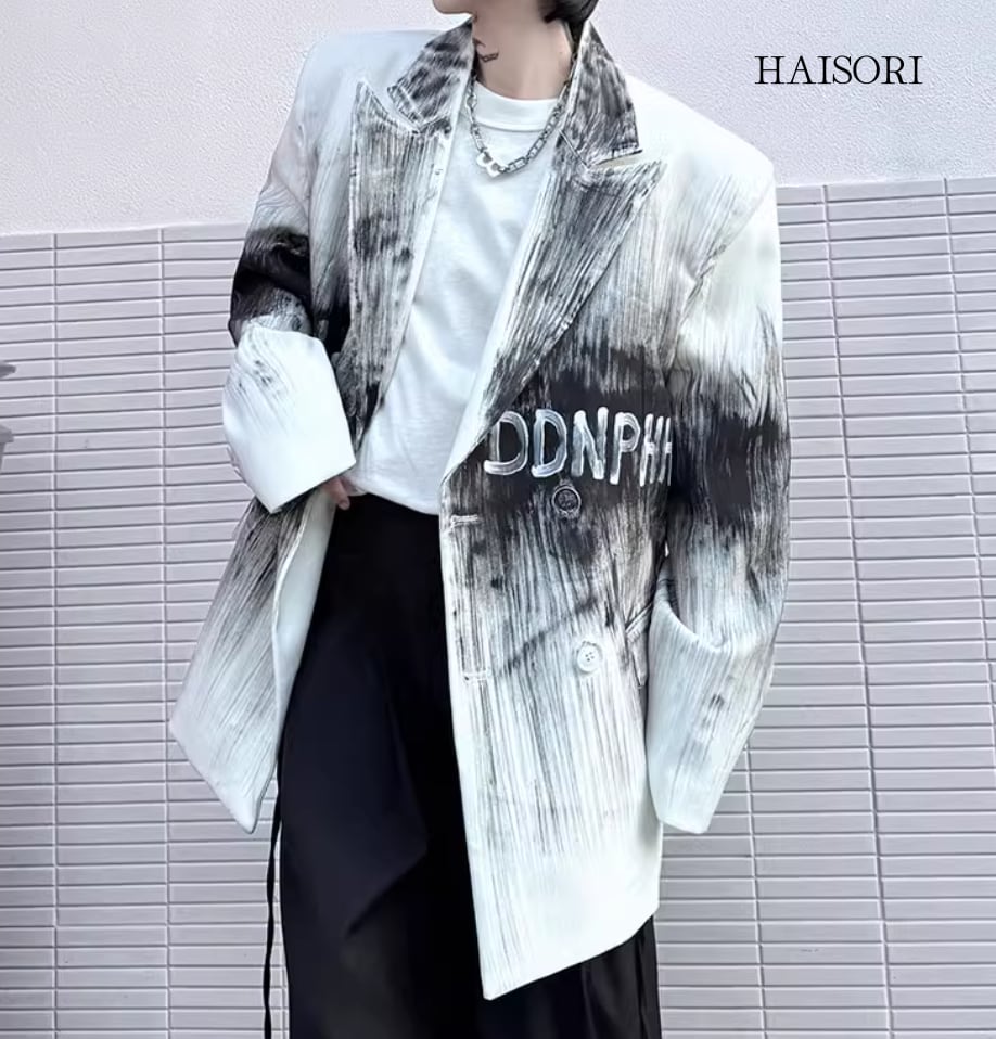 ★【 全体にペイントを施したような柄がポイント、シックなデザインのカジュアルスタイルのジャケット 】