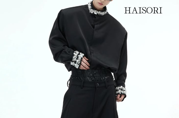 The tops are brightly designed with beaded accents on the collar and sleeves, and have a chic texture.