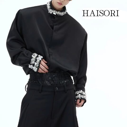 ★【 襟や袖にビーズをアクセントにした明るいデザイン、シックな風合いのトップス 】